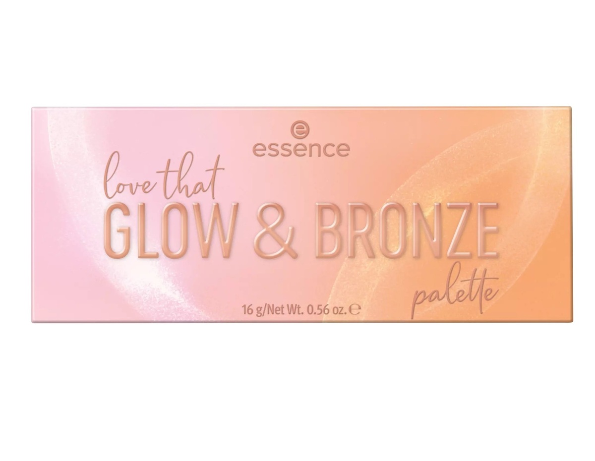 لوحة ألوان Essence Love That Glow & Bronze هي لوحة ألوان 2 في 1 بثلاثة ألوان مختلفة: أحمر خدود، برونزر، وهايلايتر، هذا كل ما تحتاجينه! لا غنى عنها لإطلالة برونزية جذابة. تتميز الألوان بكثافة تصبغات عالية، ناعمة كالحرير، وسهلة الدمج لإطلالة مكياج منعشة أو قوية.