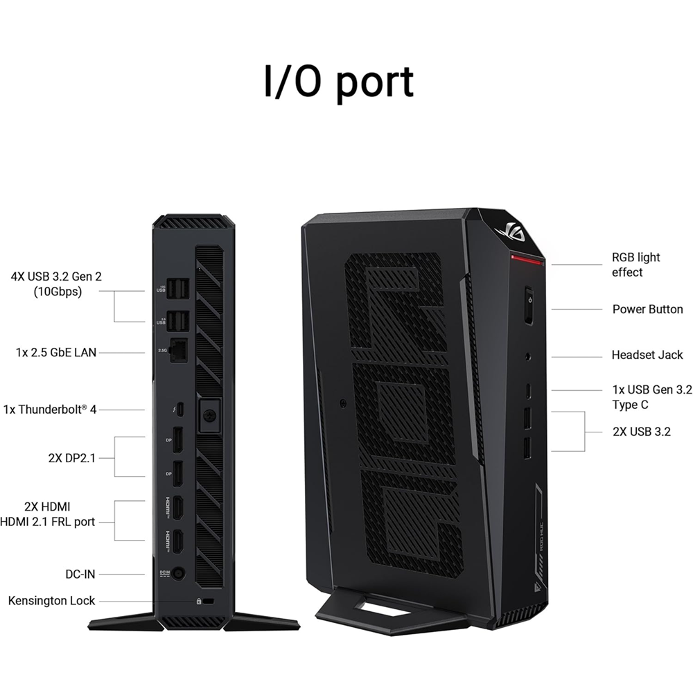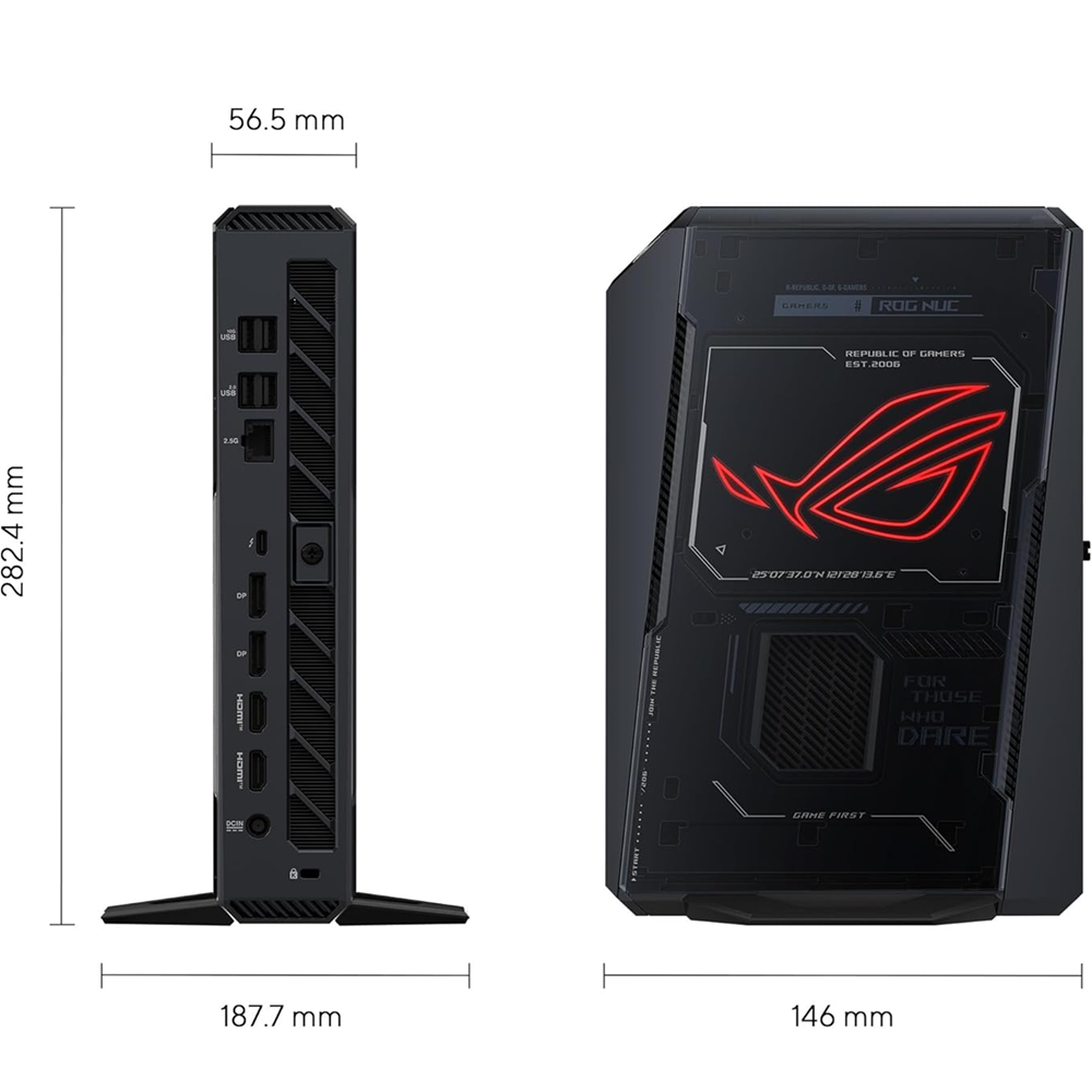 أسوس ROG NUC معالج Intel® Core™ Ultra 9 275HX (ذاكرة مخبئية 36MB) بطاقة رسومات Nvidia Geforce RTX 5070Ti بسعة 16GB GDDR7 VRAM قرص SSD NVMe Gen4 بسعة 1 تيرابايت (فتحة M.2 واحدة PCIe x4 Gen4) ذاكرة RAM بسعة 32GB (2×16GB) DDR5-5600 (دعم حتى 48GB) 1× Thunderbolt™ 4 | 1× HDMI2.1 | 2× DisplayPort 2.1 WiFi 7 | بلوتوث 5.4 | 4× منافذ USB-A نظام التشغيل: Windows ®11 Home 64-bit