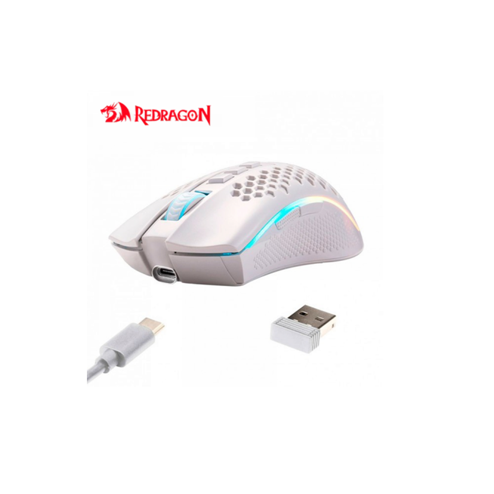 - ريدراجون M808W Storm Pro فأرة ألعاب لاسلكية بدقة 16000 نقطة لكل بوصة (DPI) – باللون الأبيض