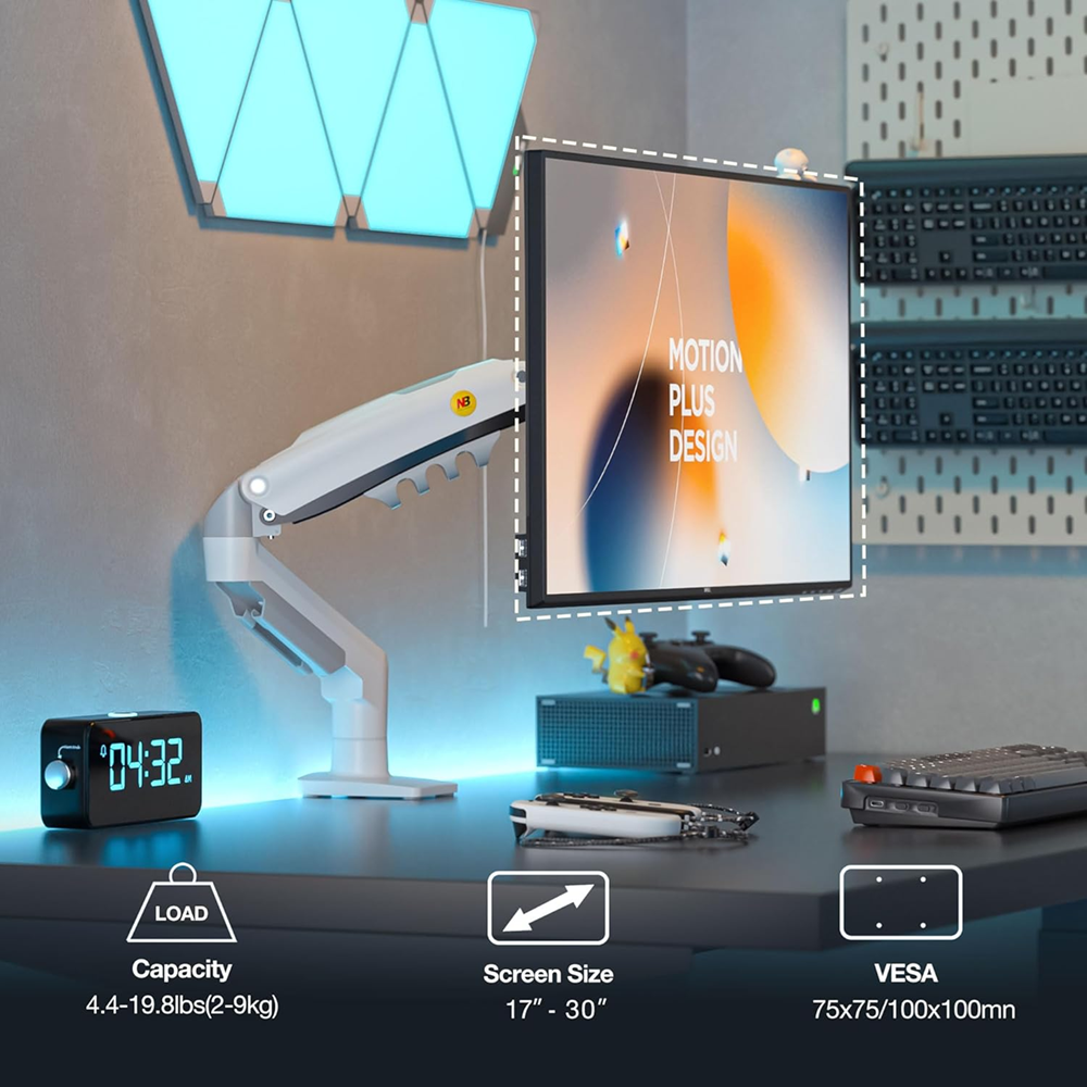 حامل مكتب بذراع واحد للشاشات NB F80-XE مقاس 17–32 بوصة، حركة كاملة، للشاشات المسطّحة، يتحمّل وزن 2–9 كجم (أبيض)