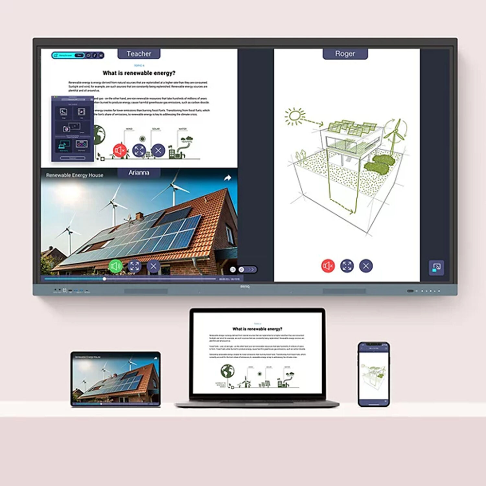 - BenQ 65″ Board Essential | RE6504، شاشة تفاعلية تعمل باللمس بدقة 4K، لوحة IPS، مكبرات صوت، شاشة تجارية