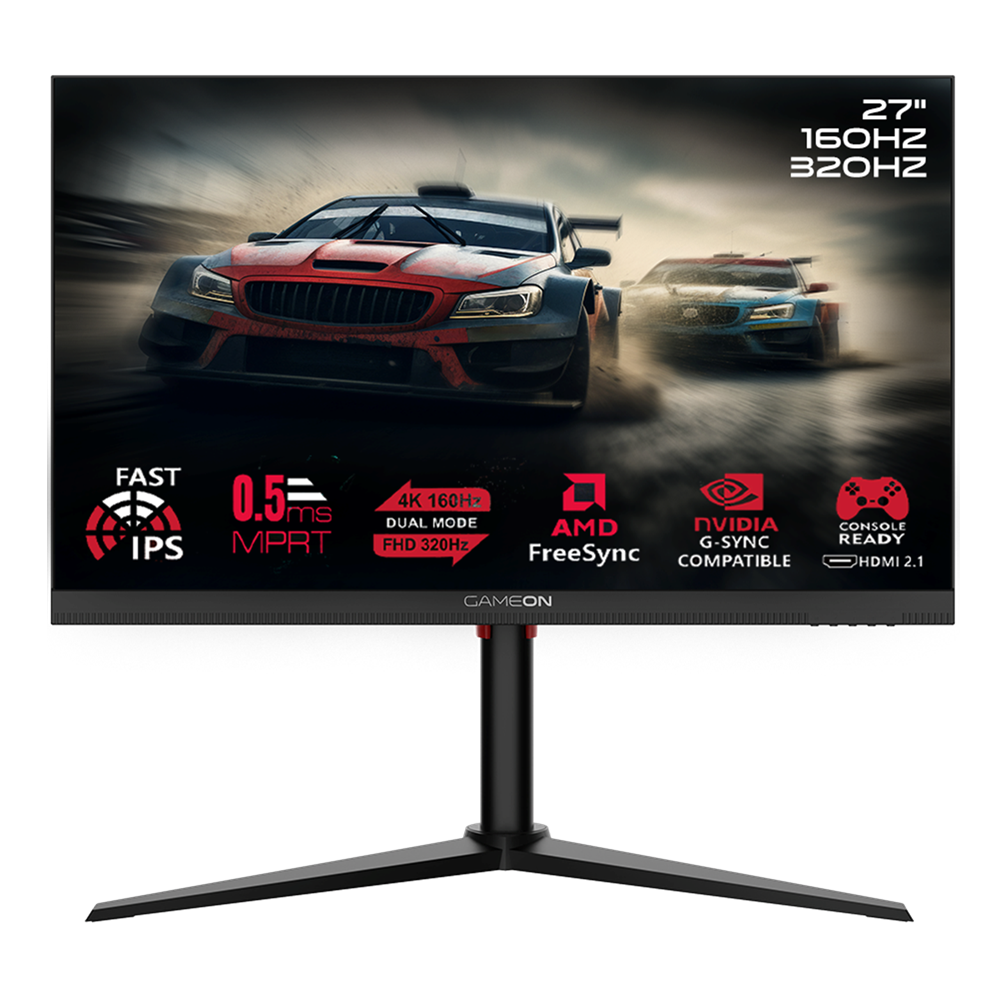 - GameOn 27″ SX27B Switch X Series Dual Mode 4K UHD 160Hz/FHD 320Hz, 0.5ms, Fast IPS HDMI 2.1 Speaker Gaming Monitor, Black