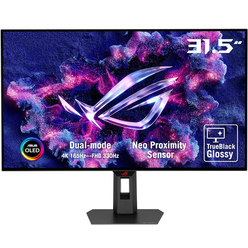 ASUS 31.5″ WOLED TrueBlack Glossy Neo Proximity Sensor 99% DCI-P3 DELTA E < 2 Supersharp and clear imagery A.I. Assistant Technology: AI Visual Dual mode (4K@165Hz, FHD@330Hz) VESA DisplayHDR™ 400 True Black compliance