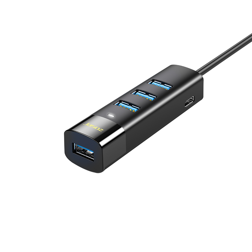 Jasoz F117 4-port hub has 4 independent USB ports available for use to increase the number of USB ports on your laptop and other devices. With its simple and elegant appearance, built-in Taiwan GENESYS GL3510 for greater compatibility, high performance and low power consumption, this product is the perfect assistant for the home office.